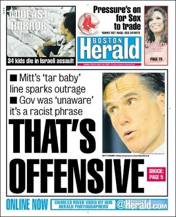 - Gov. Mitt Romney has apologized for referring to the Big Dig mess as a "tar baby" during a fundraiser with Iowa Republicans, saying he didn't know anyone would be offended by the term some consider a racial epithet...